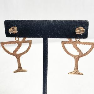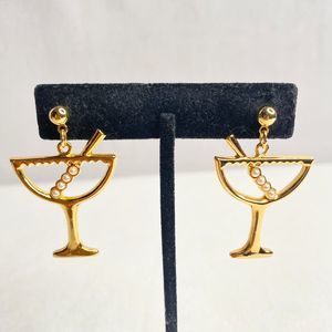 Dangle Drop Earrings Gold Tone Martini Cocktail Mini Imitation Pearl Beads