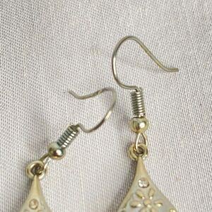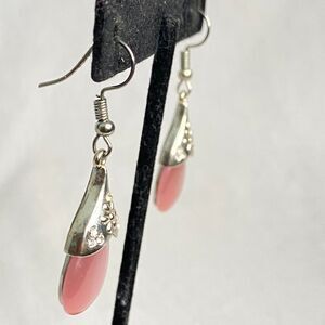 Dangle Drop Earrings Striated Pink Teardrop Stones With Silver Tone Caps
