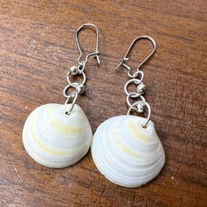 Dangle Earring Genuine Handcrafted Seashell Yellow Orange Hue Beach Coastal