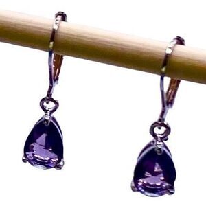 AWK A striking Amethyst colored Zircon teardrop of exceptional color and clarity. This 1” dangle earring is set in a hypoallergenic 925 silver plated setting. A great value of fine jewelry at great pricing! Let’s make it yours!