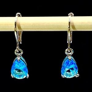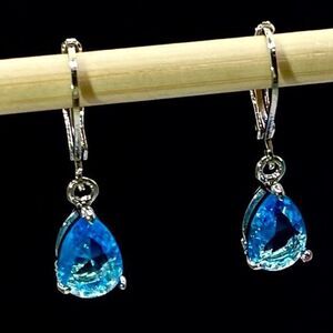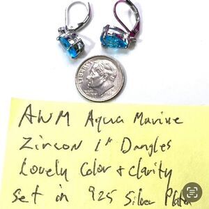 AWM A striking Blue Zircon teardrop of exceptional color and clarity. This 1” dangle earring in set an hypoallergenic 925 silver plated setting. A great value of fine jewelry at great pricing! Let’s make it yours!