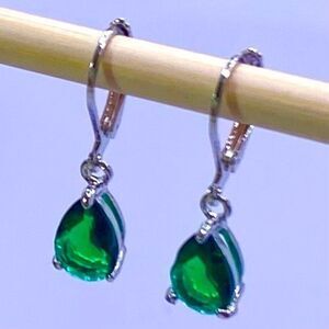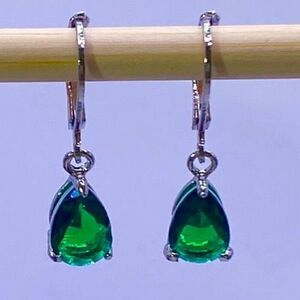 AWK A striking Green Zircon teardrop of exceptional color and clarity. This 1” dangle earring is set in a hypoallergenic 925 silver plated setting. A great value of fine jewelry at great pricing! Let’s make it yours!