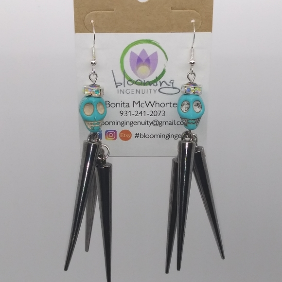 Skulls and points! Halloween dangles! .925 stamped silver ear hooks