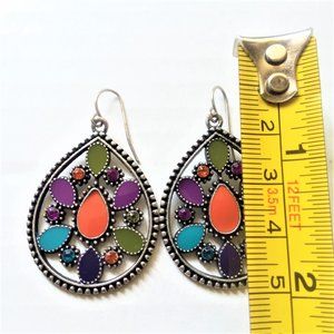 Dangle Earrings Boho Hippie TearDrop Stylish Colorful Trendy VTG Enamel