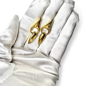Dangle Earrings Gold Tone Post Double Drop Polished Shiny Pierced Hook Artistic