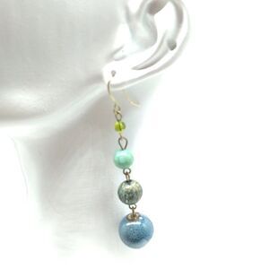 Dangle Earrings with Ear Hooks, Round Glass Blue, Turquoise, Acrylic Bead