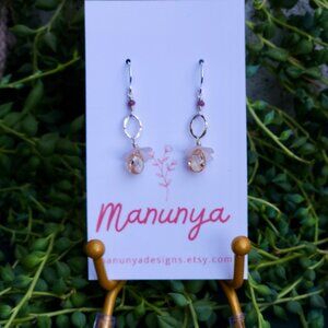 Elevate your style with these one-of-a-kind dainty dangle flower earrings, perfect for everyday wear or special occasions. Featuring a sparkling champagne-colored cubic zirconia nestled beneath a delicate lucite petal, these earrings bring understated elegance to your look. A tiny purple glass bead adds a pop of color, while sterling silver components create a sleek and lightweight design.