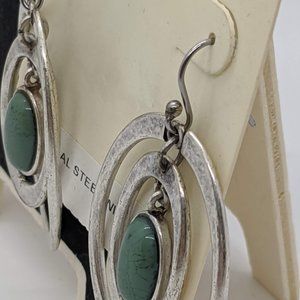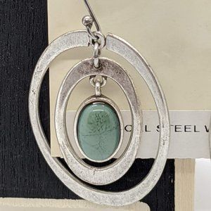 Axcess by Liz Claiborne dangle hoop earrings silvertone with pale green stone 1.5" long 1" wide