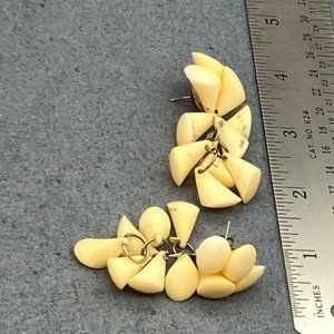 Exotic and unusual retro vintage cluster earrings with ivory/yellow-ish creamy color acrylic pieces that resemble teeth or clause. These are acrylic including faint seam lines, silvertone post and findings!