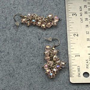 Dangle Pierced Earrings Pink Iridescent Faceted Beads Silver Soft Girl Barbie