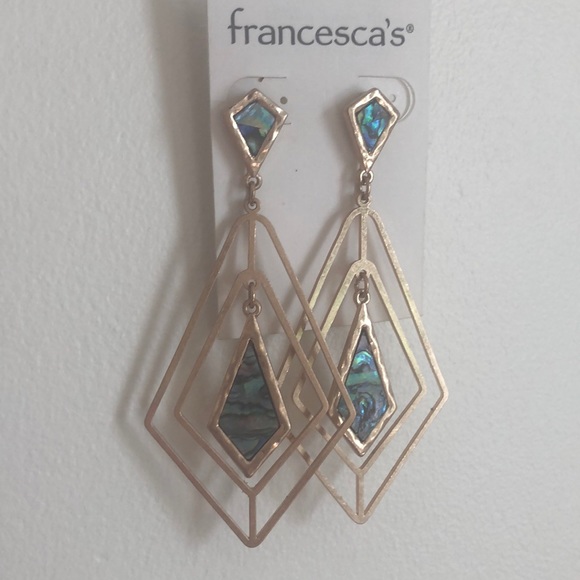 Francescas Art Deco long drop geometric earrings! Never worn. About 3 inches from top to bottom and 1.5 inches wide at its widest point.
