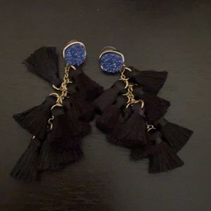 Black dangle earrings with blue gem detail NEVER WORN
