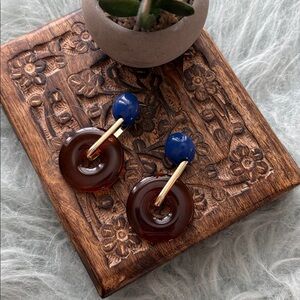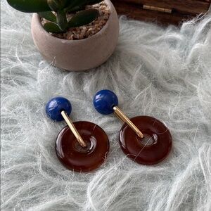Brown circles with blue post, goldtone accent