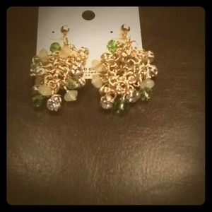 Dangle gold and multi green green earrings.
