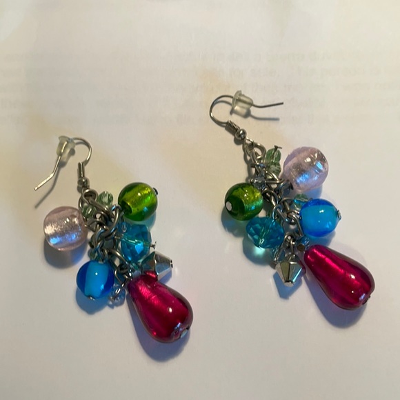 3 inch dangling Multi colored beads earrings. They’ll go with any outfit. They are really cute with your favorite jeans