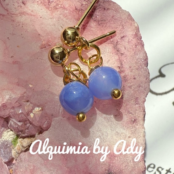 Dangle stud gold earrings with aquamarine