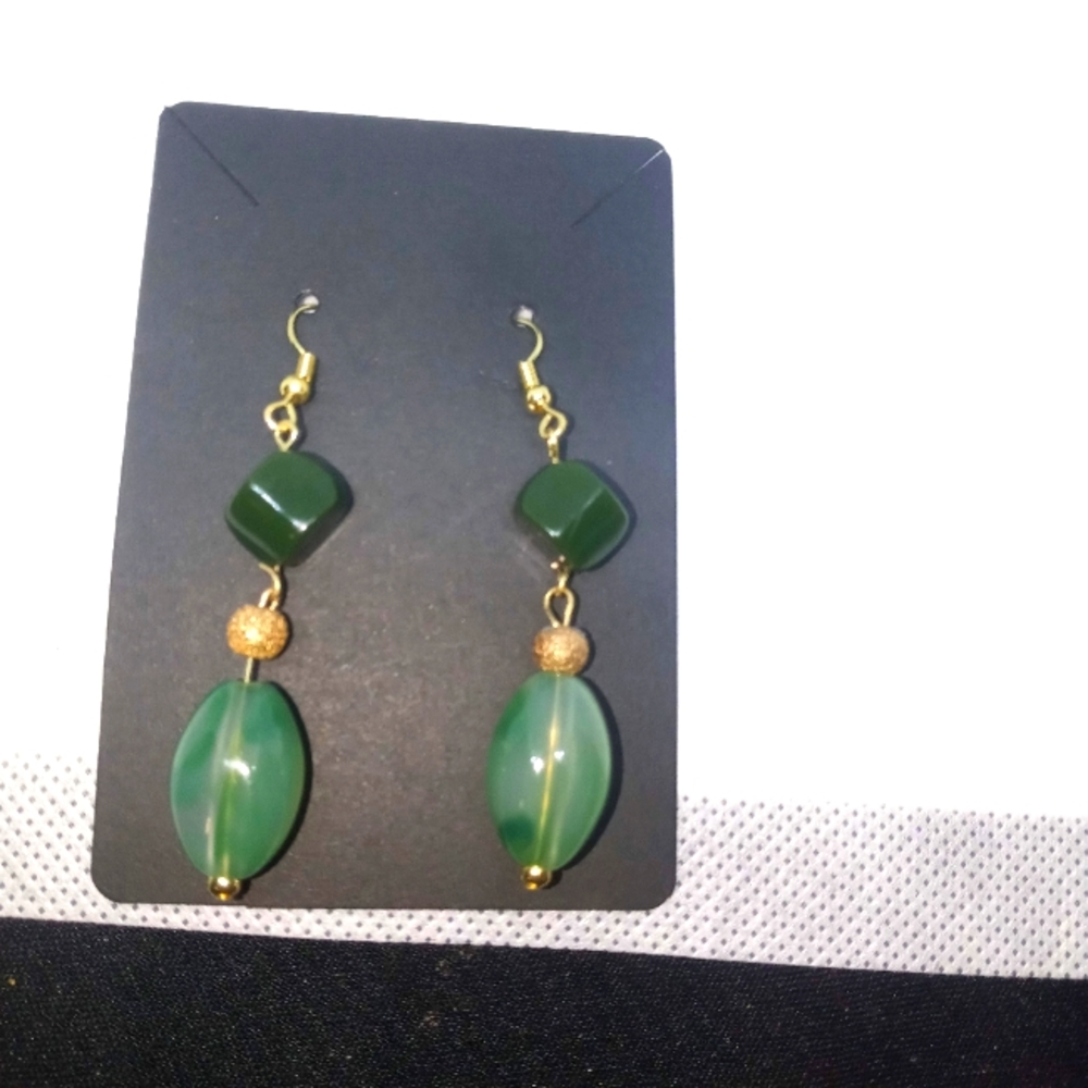 Handmade by me gorgeous earth tone green with gold glitter bead dangle earrings