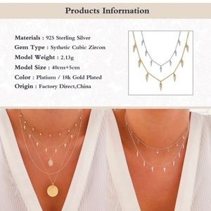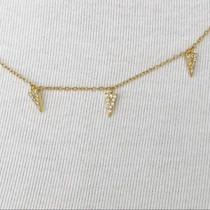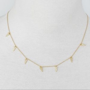 Sexy Dangerous! 18k gold-plated 925 sterling silver necklace with dangling sparkling upside-down triangles or arrowheads. Clear crystal CZ stones. 40cm long with a 5cm extension to adjust to your preferred length! *The pendants seem to stick out more than dangle*
