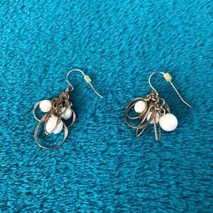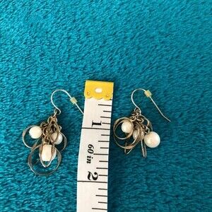 Dangling Faux Pearl and Silver Hoop Drop Earrings Back Stoppers Costume Jewelry