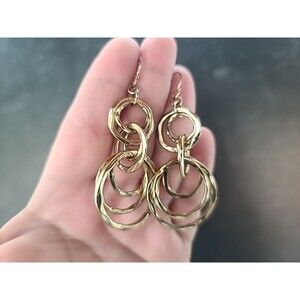 Dangling Gold Tone Metal Pierced Earrings Vintage Costume Jewelry, READ