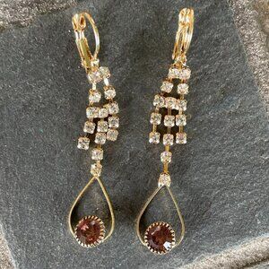Dangling Goldtone Earrings With Clear and Brown Rhinestones by Jin Na La
