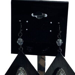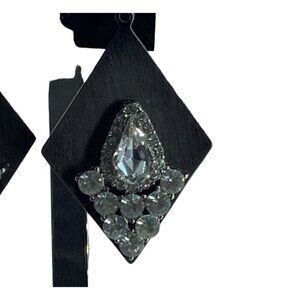 Dangling Rhinestone Diamond Shape Earrings Black Metal Formal Fashion Glam 2.5"