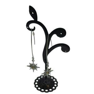 Dangling Starburst Silver Earrings With Hook Closure