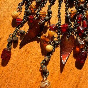 Dangly Bead, Charm, Antique Brass Finish Chain Necklace