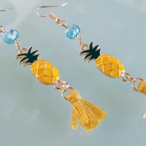 Pineapples are one of the hottest trends this season! These earrings are just too much fun featuring pineapple0p and tassel detail! If you're going on vacation or headed to the beach don't forget your pineapple earrings!