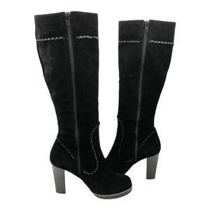 Dani Black Suede Black Leather Western Knee High Boot Weave Detailing Size 8