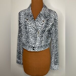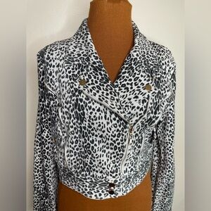 Dani Collection Leopard Print Moto Jacket Cropped Size Medium