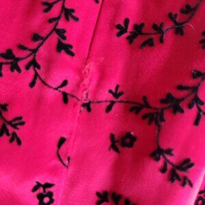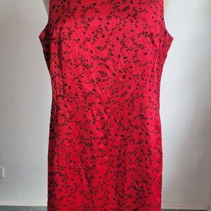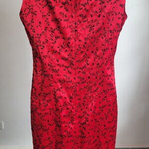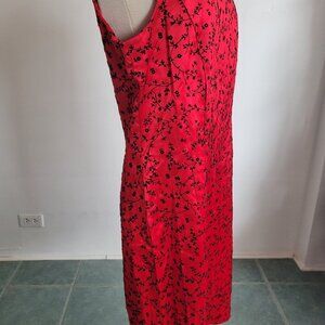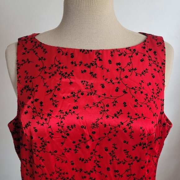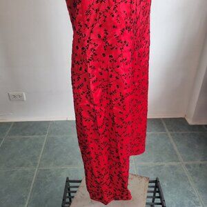 Dani Max 1990s Red Satin Chinese Flowers Flocked Velvet Slip Dress (Size: 8)