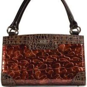 MICHE retired classic photos display shell, brown and red stitched swirl design.