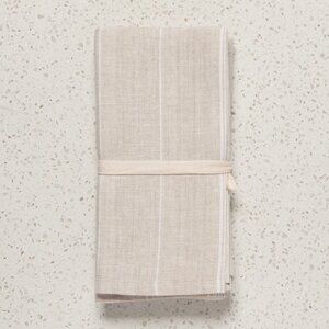 In shades of white, fine bands are woven into these subtly chic linen napkins. Linen is woven into the fabric of human history. It's a material that continues to stand the test of time. It's durable, yet gets softer and more absorbent with every wash. It's also sustainable, as crop production uses very little water.