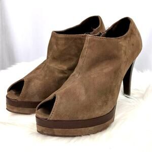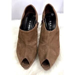 Daniel Brown Suede Leather Peep Toe Heeled Bootie Pumps Size 37
