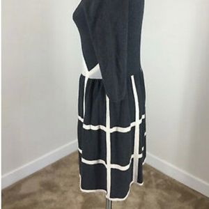 Daniel Cremieux, 3/4 sleeve Color-block Geometric Cotton Blend A Line Knit Dress