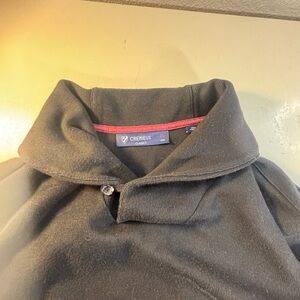 Elegant black turtleneck by Daniel Cremieux. Features distinctive brown elbow patches. Perfect for a sophisticated style.