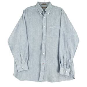 Daniel Cremieux Blue Button Down Long Sleeves Pocket Dress Shirt Linen Large