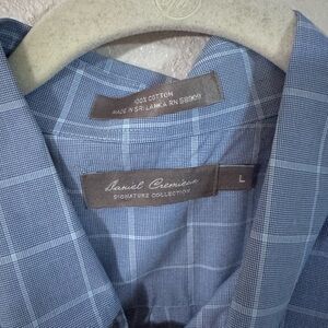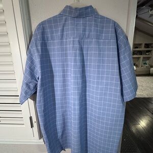 This Daniel Cremieux shirt features a stylish blue windowpane pattern, perfect for a casual yet refined look. Made from breathable fabric, it's ideal for warm weather and relaxed outings. The short sleeves and button-down collar add to its classic appeal.