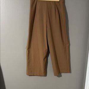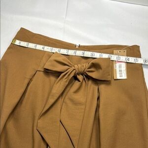 These brown capris from Daniel Cremieux feature a high-waisted design with a stylish tie belt for a customizable fit. Crafted from a medium-weight fabric, they offer a relaxed and flowing silhouette that ends at a chic cropped length. Perfect for both casual and semi-formal occasions, these capris are a versatile addition to any wardrobe.
