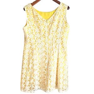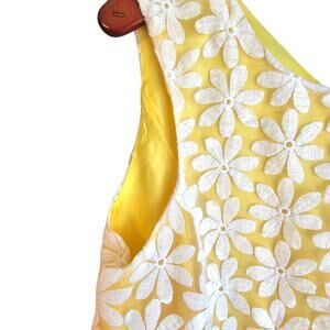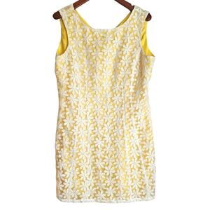 Daniel Cremieux Embroidered Yellow & White Daisy Flower Mod Sheath Dress