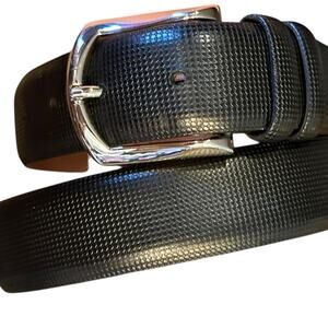 Daniel Cremieux Mens Size 36 Black Leather Textured Belt Silver Buckle