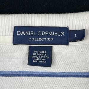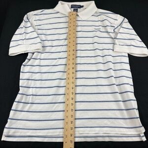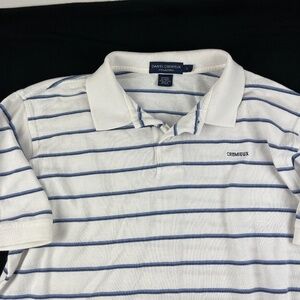 Daniel Cremieux Polo Mens Large White Blue Striped Short Sleeve