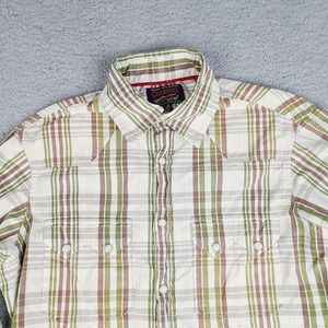 Daniel Cremieux Shirt Mens Large Beige Plaid Western Pearl Snap LS Button Down