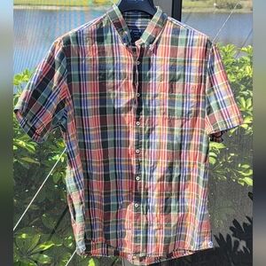 Daniel Cremieux Shirt Men’s Red Colorful Plaid Short Sleeve Button Down XLARGE.