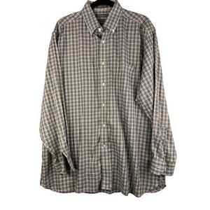 Daniel Cremieux Shirt -Mens XL-Non-Iron Gray Tan White Plaid LS BD