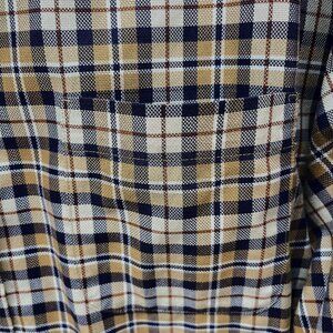 Daniel Cremieux Signature Collection men's long sleeve button-up shirt in an XL size, featuring a brown and blue plaid pattern. Made from cotton, this classic fit shirt has a collared neckline and button accents. It is suitable for casual or travel occasions and is machine washable. The Daniel Cremieux brand adds a touch of sophistication to this timeless piece, making it versatile for all seasons.