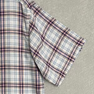 This listing is for a new with tags Daniel Cremieux Signature Collection Men's Large Casual Shirt in Blue and Pink Plaid. Short Sleeve, Hemp Blend, Spread Collar. 87% Lyocell, 13% Hemp, Machine Washable.