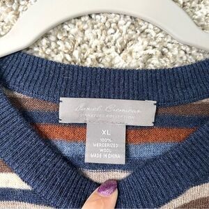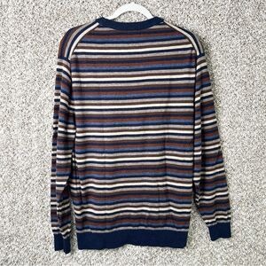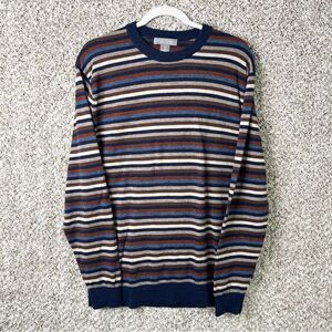 Excellent used Condition Men’s Daniel Cremieux Multicolored Striped 100% Mercerized Wool Knit Pullover Crew Neck Sweater in Size XL
