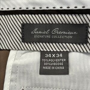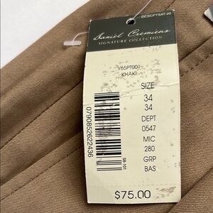 These Daniel Cremieux dress pants in a sophisticated tan color feature a pleated front and a straight leg cut, offering a classic business casual style. Made from a comfortable cotton-blend material, they are designed to provide a relaxed fit through the leg, making them perfect for any formal occasion.
